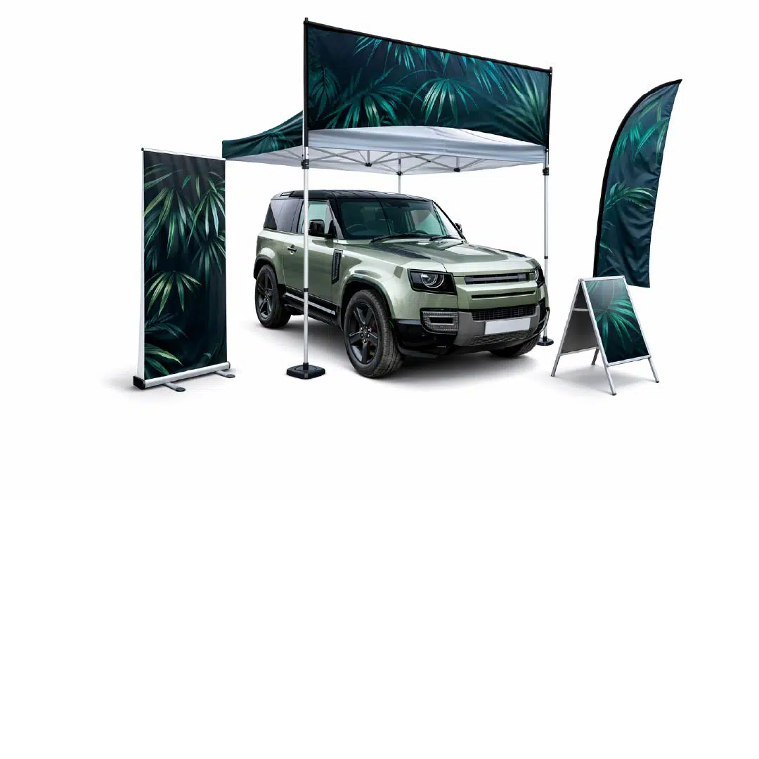 Mainoskatokset ovat täydellinen ratkaisu ulkoilmatapahtumiin ja messuille, joissa tarvitaan suojaa säältä ja näkyvyyttä. Ne tarjoavat yrityksellesi oman tilan, joka toimii sekä markkinointipisteenä että suojana asiakkaille ja työntekijöille. Pop up -katokset ovat helppoja pystyttää ja purkaa, ja ne voidaan räätälöidä yrityksesi logolla tai viestillä.