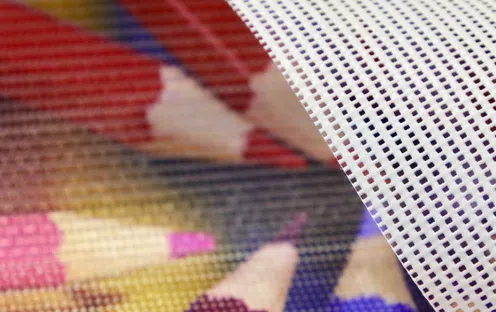 Materiaali tarjoaa laadukkaan painojäljen ja hyvän näkyvyyden, mutta samalla sen rei’itys mahdollistaa näkymän läpi tai päästää valoa lävitse tarpeen mukaan. Materiaali sopii erinomaisesti paikkoihin, joissa suuria pintoja halutaan peittää, mutta rakennetta ei tarvitse täysin sulkea.