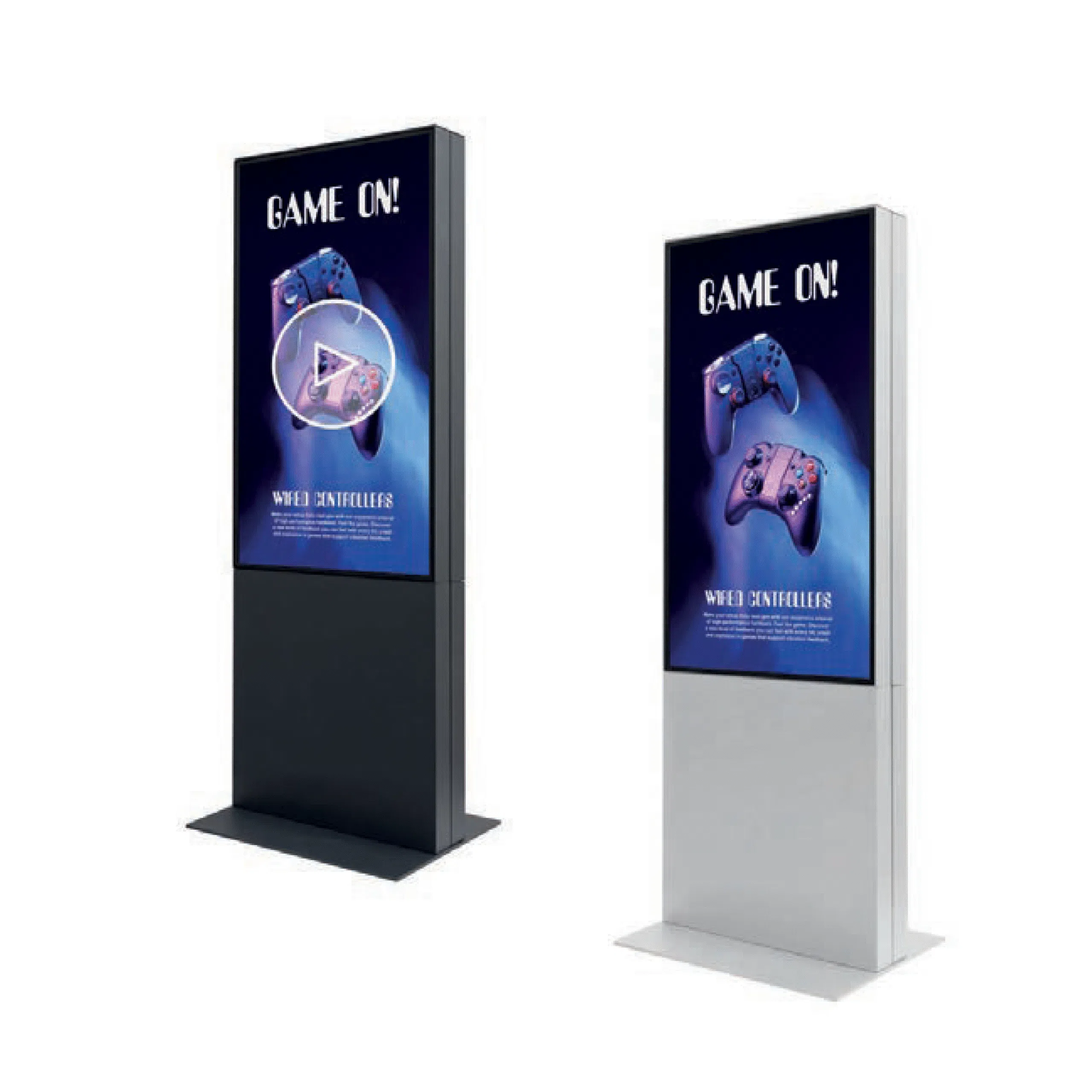 Mainosta viestiäsi useisiin suuntiin Digitaalinen näyttö Totem -ratkaisulla, jossa on näytöt molemmin puolin. Voit halutessasi esittää eri sisällön kummallakin puolella. Erinomainen valinta messuille, lentoasemille ja kauppakeskuksiin.