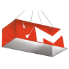 Katosta ripustettava rakenne näkyy kauas messuhallissa, ohjaa kävijävirtoja ja auttaa rajaamaan selkeästi brändättyjä alueita. Se tekee brändistäsi näkyvän joka suunnasta.