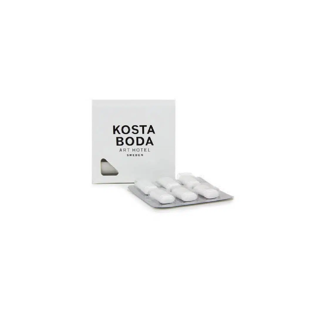 Raikas viesti, joka jää mieleen! Tämä 12 kappaleen pakkaus korkealaatuista, sokeritonta purukumia on täydellinen give-away. Pakkauksessa on runsaasti tilaa logollesi. Nopean toimituksen ansiosta se on helppo ja tehokas tapa yhdistää brändisi johonkin raikkaaseen ja positiiviseen.