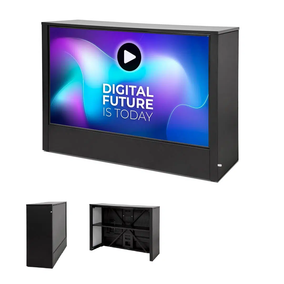 Digitaalinen messupöytä yhdistää modernin muotoilun ja käytännöllisyyden. Kaikki perusominaisuudet sisältyvät kokonaisuuteen, ja työkaluton kokoaminen mahdollistaa nopean käyttöönoton – tiskin pystytys onnistuu hetkessä. Sisähylly tarjoaa kätevän säilytystilan, jotta huomio pysyy olennaisessa: viestissäsi ja brändissäsi. Vie esillepanosi uudelle tasolle ja esittele yrityksesi, tuotteesi tai kampanjasi näyttävästi messuilla, tapahtumissa, kauppakeskuksissa, pop-up-myymälöissä ja muissa tilaisuuksissa.