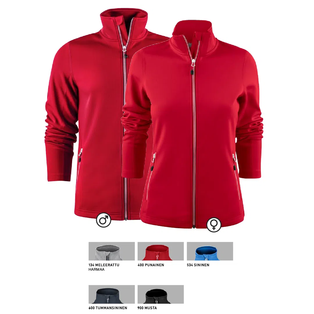 Collegetakki joustavasta materiaalista, jossa täyspitkä vetoketju ja pystykaulus. Kevyessä takissa on tehosteväriset vetoketjut ja koristeelliset flatlock-tikkaukset. Sivuilla vetoketjutaskut. Sopii hyvin aktiiviseen liikkumiseen. Vaate on värjätty ympäristöystävällisellä Spun Dyed -tekniikalla, joka kuluttaa vähemmän vettä, kemikaaleja ja energiaa. Oeko-Tex-sertifioitu.