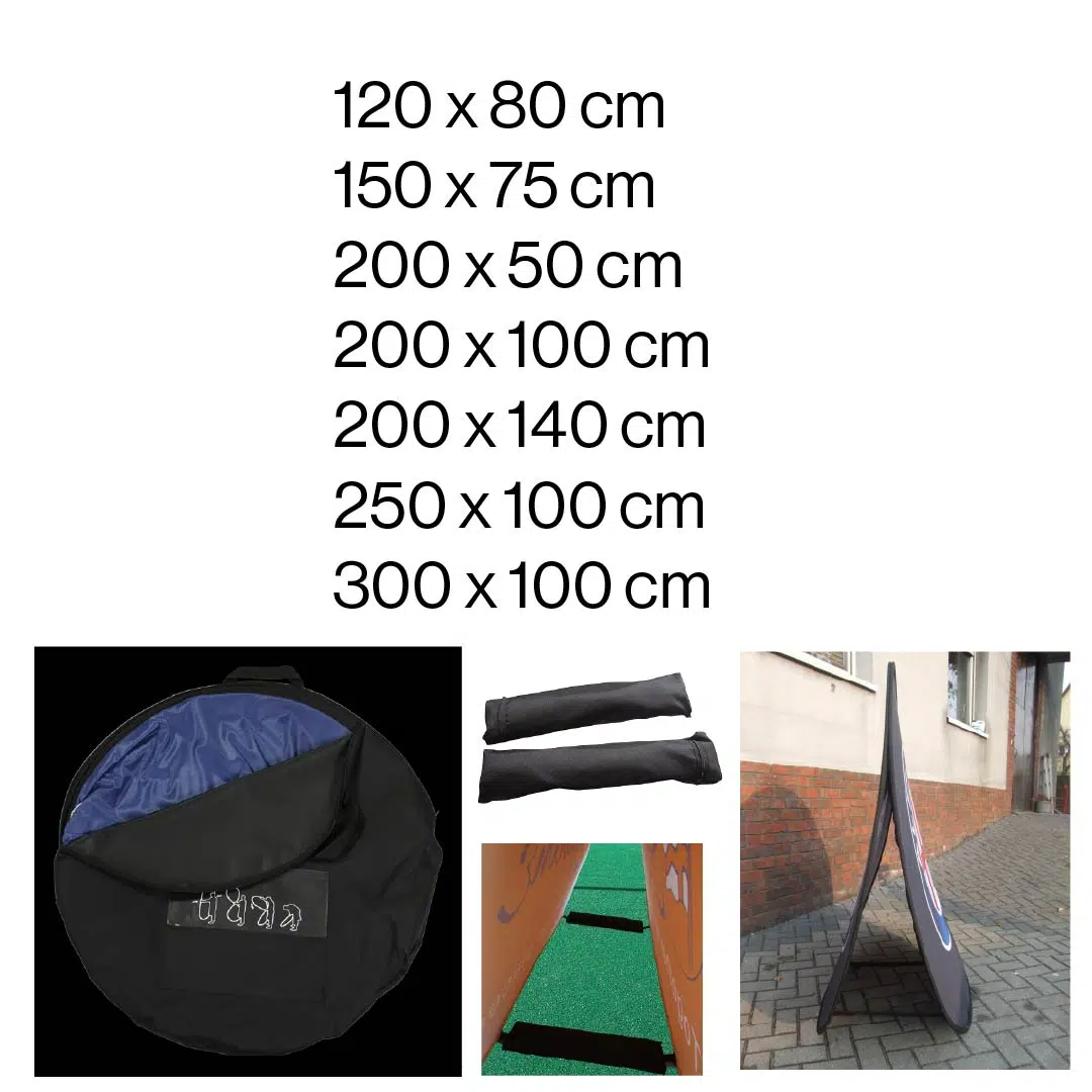 Sandwich kangasbanneri suorakaide on monikäyttöinen mainos sisä- ja ulkokäyttöön. Kevyt ja helposti kantopussissaan mukana kulkeva banneri ponnahtaa auki parissa sekunnissa, ja se on käyttövalmis ilman työkaluja. Kaksipuolinen painatus mahdollistaa sen käytön tilanjakajana, esimerkiksi tapahtumissa, messuilla ja sisätiloissa.