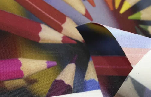 Monikäyttöinen kangasbanderolli toistaa printtivärit upeasti. Kangas on ilmatiivis ja hyvin muotonsa pitävä materiaali. Kankaan taustapuoli on valkoinen ja se kuultaa hieman läpi. Banderollin valoa vasten toistuva printti näkyy taustalla himmeänä peilikuvana. Sopii hyvin lightbox-kankaaseen.