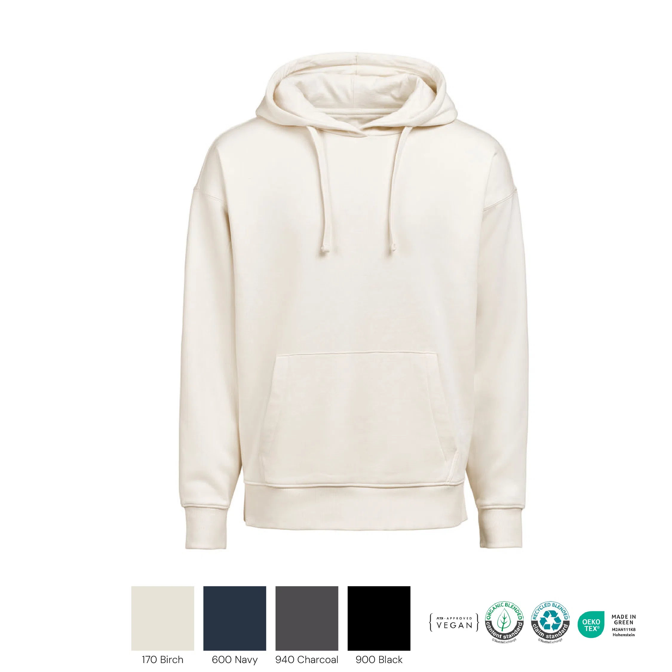 Rennon mallinen huppari, joka on valmistettu 80 % luomupuuvillan ja 20 % kierrätetyn polyesterin sekoituksesta. Huppari on unisex-mallinen.