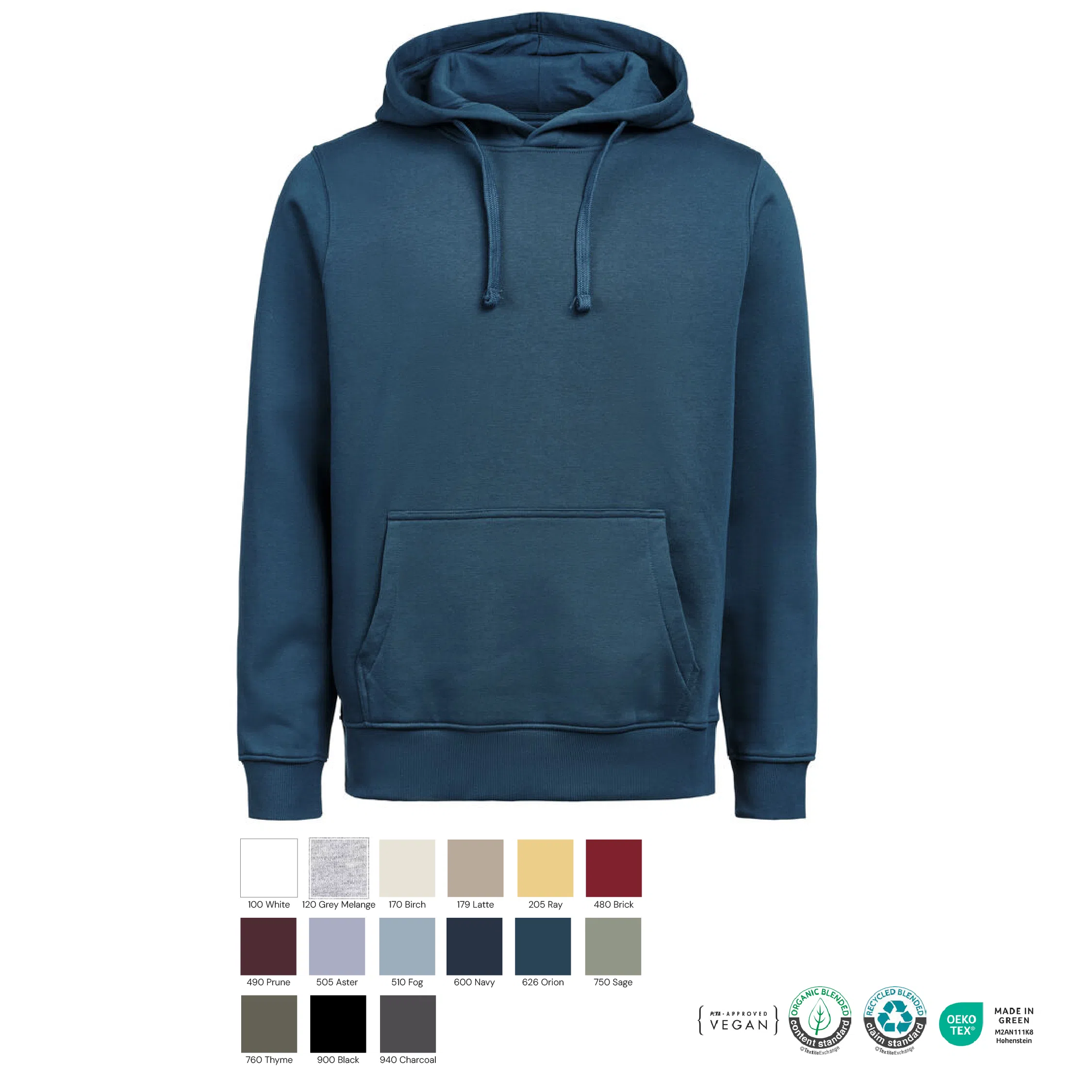 Pehmeä ja mukava unisex-mallinen huppari. Valmistettu 80 % luomupuuvillan ja 20 % kierrätetyn polyesterin sekoituksesta. Hupparissa on säädettävä kiristysnyörillinen huppu, 2×1-resorit hihansuissa ja helmassa. Huppari on entsyymipesty, joten se tuntuu pehmeältä. Paino: 350 g/m²